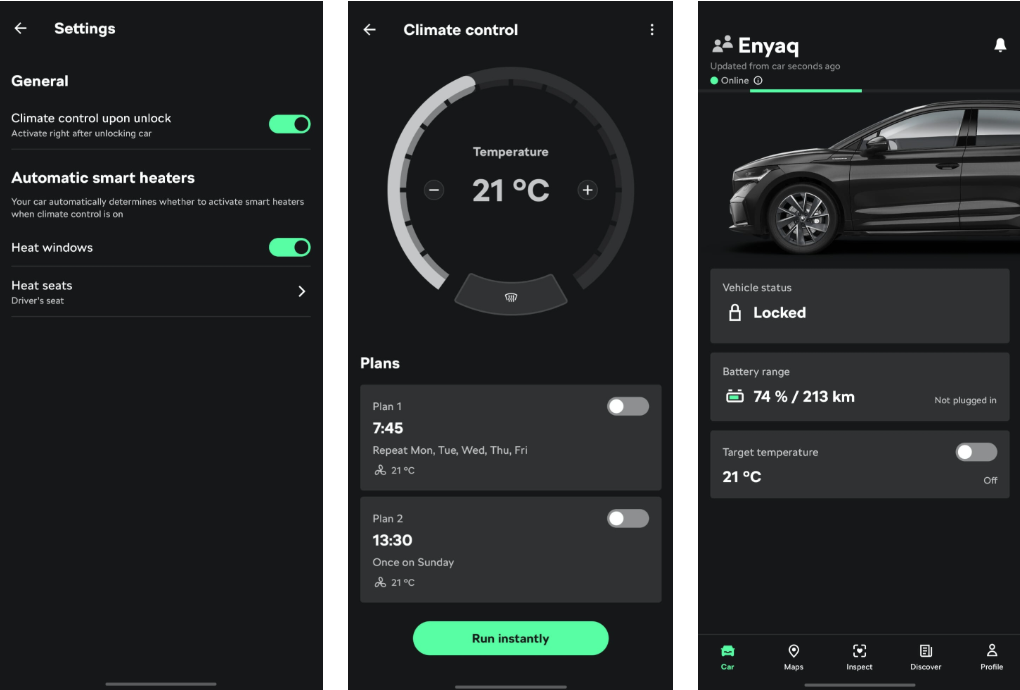 Seisusoojendust ja teisi mugavusfunktsioone on kõige lihtsam seadistada MyŠkoda rakenduse kaudu.